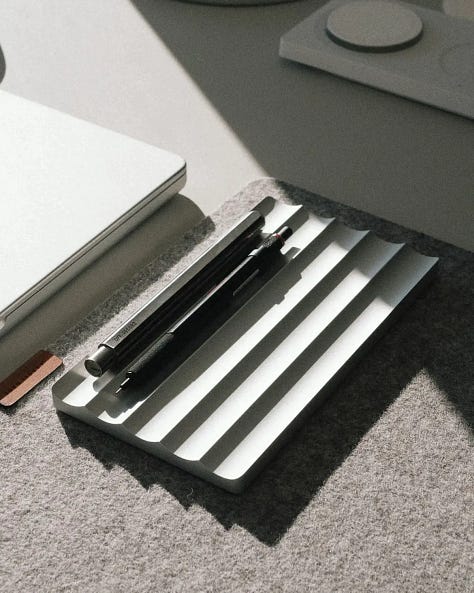 ov_e makes beautifully machined desk products that are built to last a lifetime. Their aluminum Tray_01 is the perfect pen storage for your desk, credenza, or nightstand. Each one is beautifully crafted as a work of modern art.
